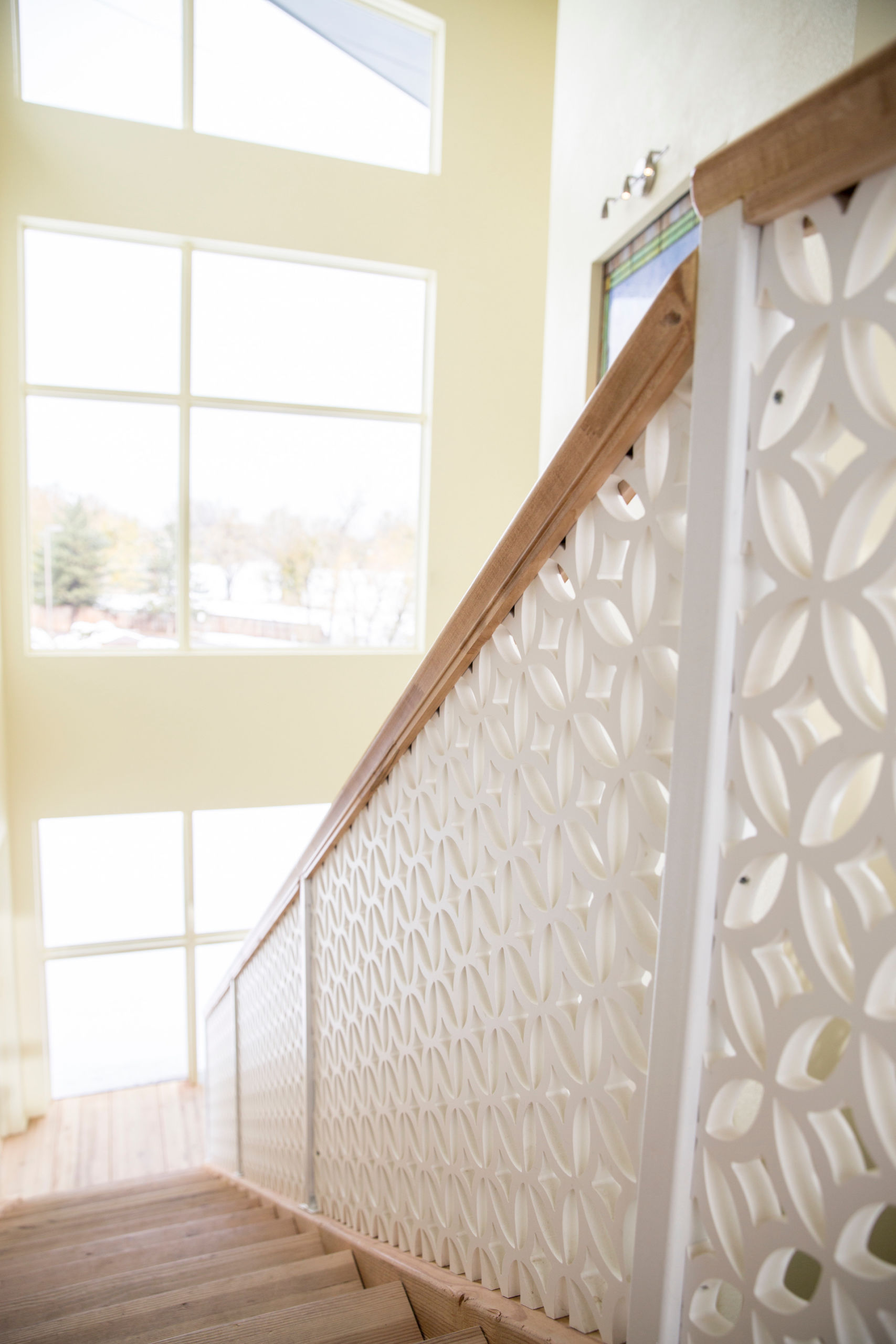 A homeowner in Lakewood, CO used our White Moors Ellipses lattice instead of traditional balusters. The overall effect adds an aesthetic lightness and grace to the room. The selection of white lattice in particular to enhance the natural light is a nice touch!